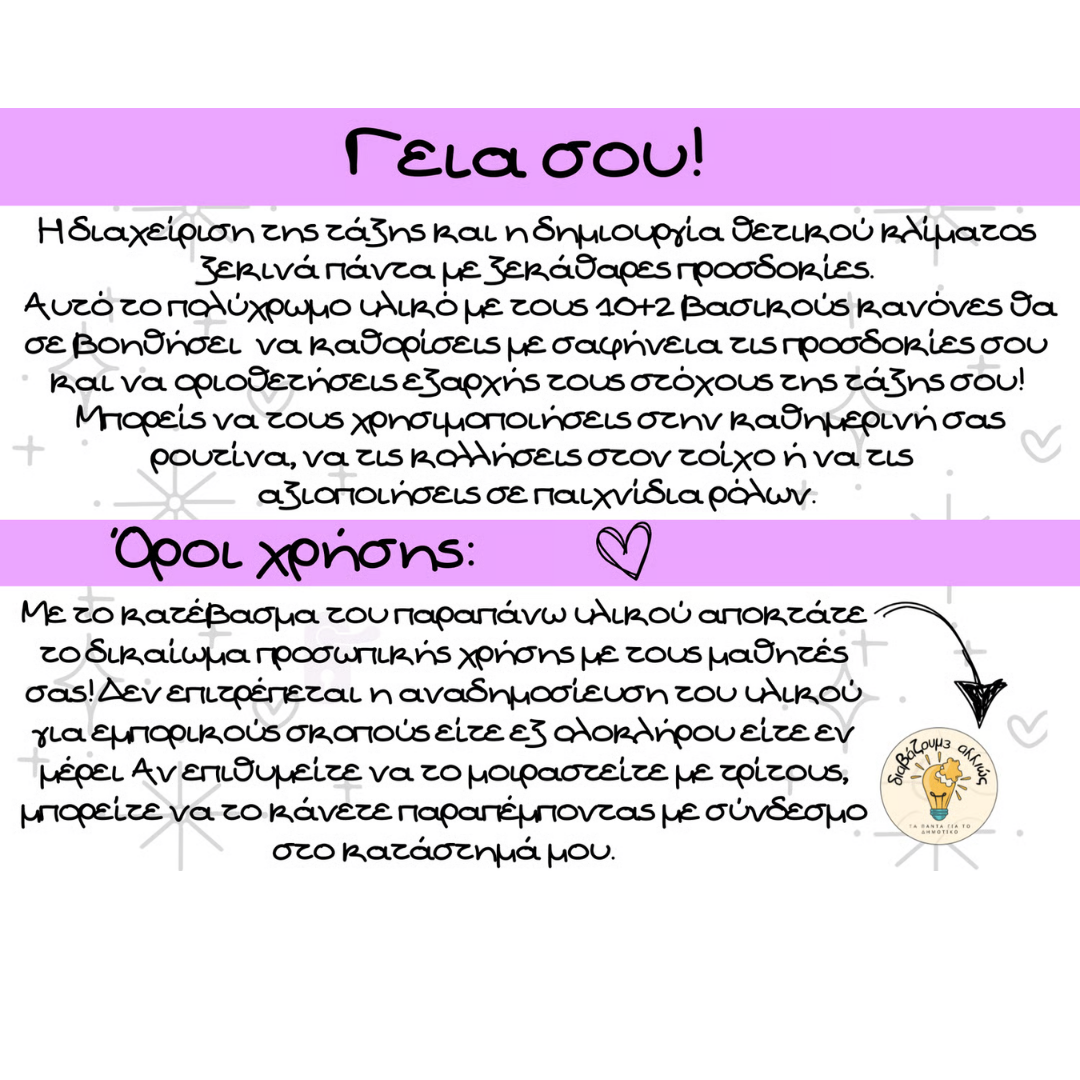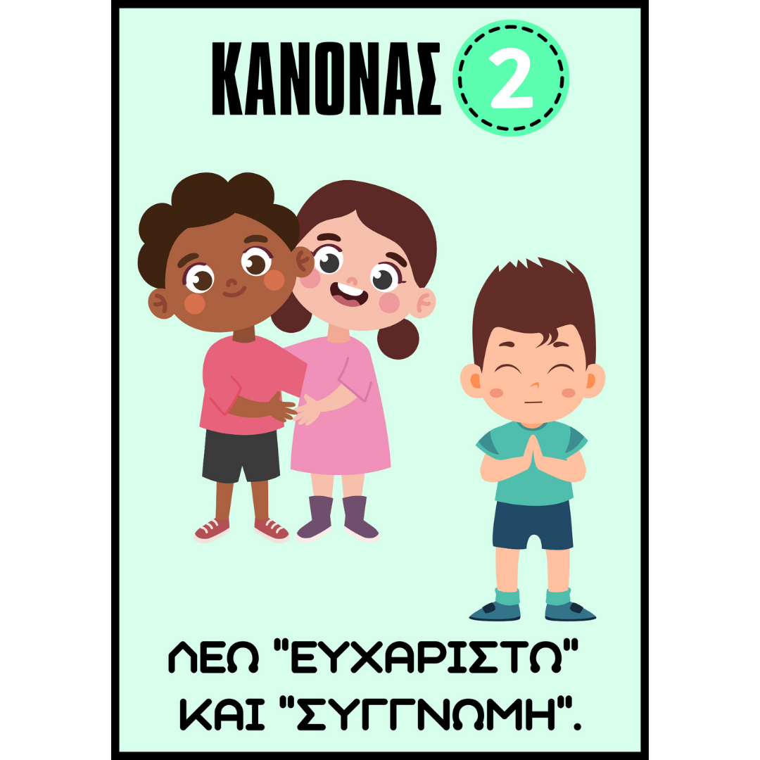 - 10 βασικοί κανόνες + 2 bonus (π.χ. «Ακολουθώ το Φωνόμετρο», «Σκέψου πριν μιλήσεις…» Τα αντίστοιχα αρχεία θα τα βρείτε στη σελίδα).