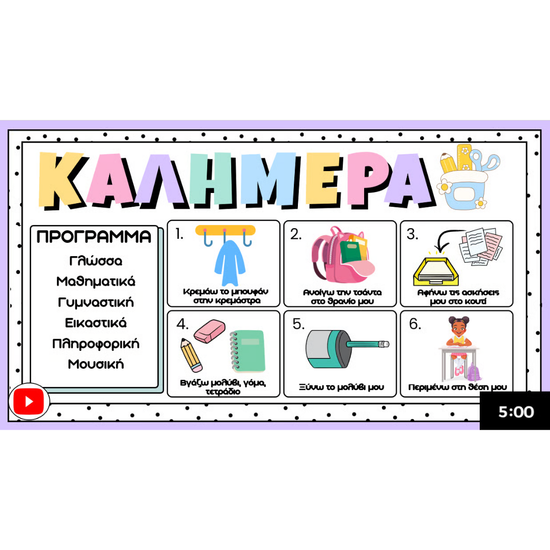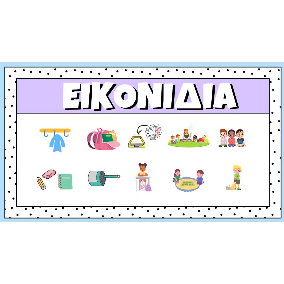 - Πρόγραμμα ημέρας & βήματα ρουτίνας με έτοιμα εικονίδια 🧥🎒✏️