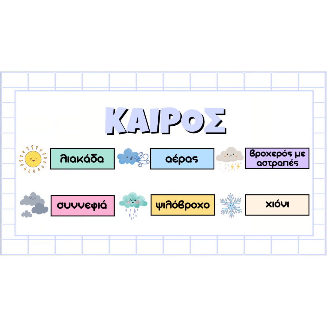- «Σήμερα είναι…» (μέρα/μήνας/ημερομηνία) με διαδραστικά κουμπιά